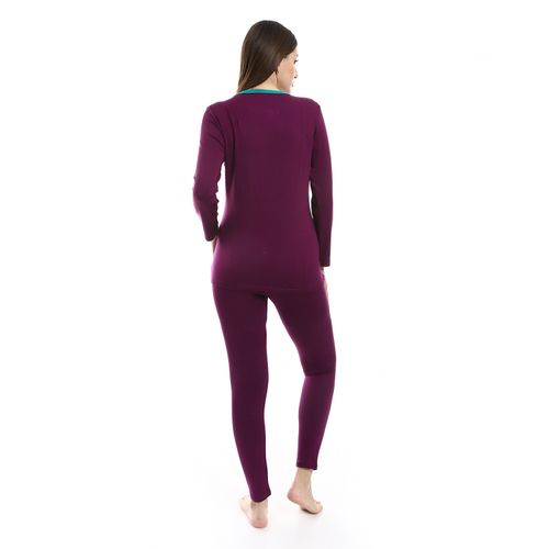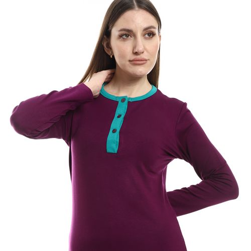 طقم بيجامة نسائي بأكمام طويلة وخصر مطاطي من كادي