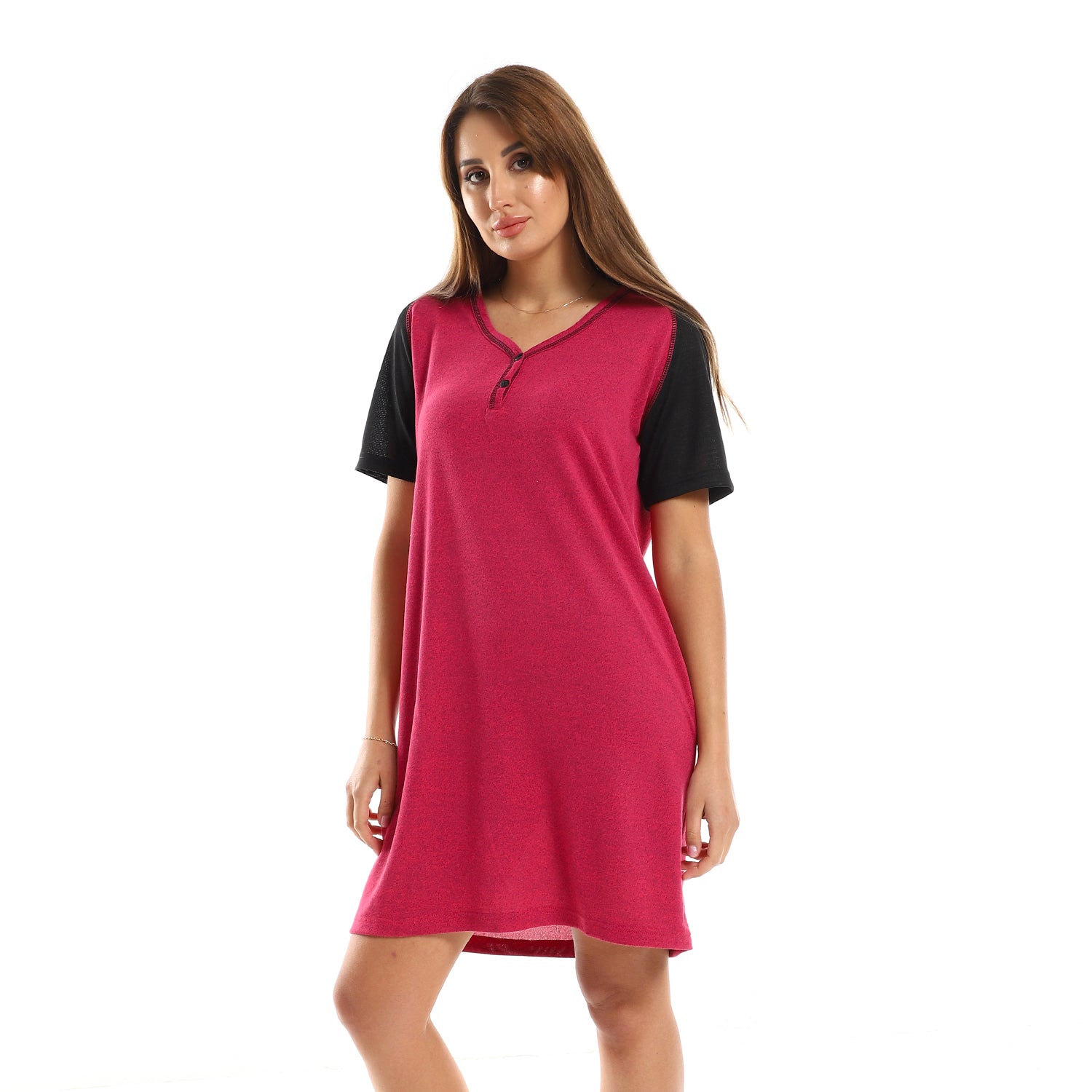 قميص نوم بأكمام فردية من كادي، لون هيذر أحمر فوشيا وأسود للنساء
