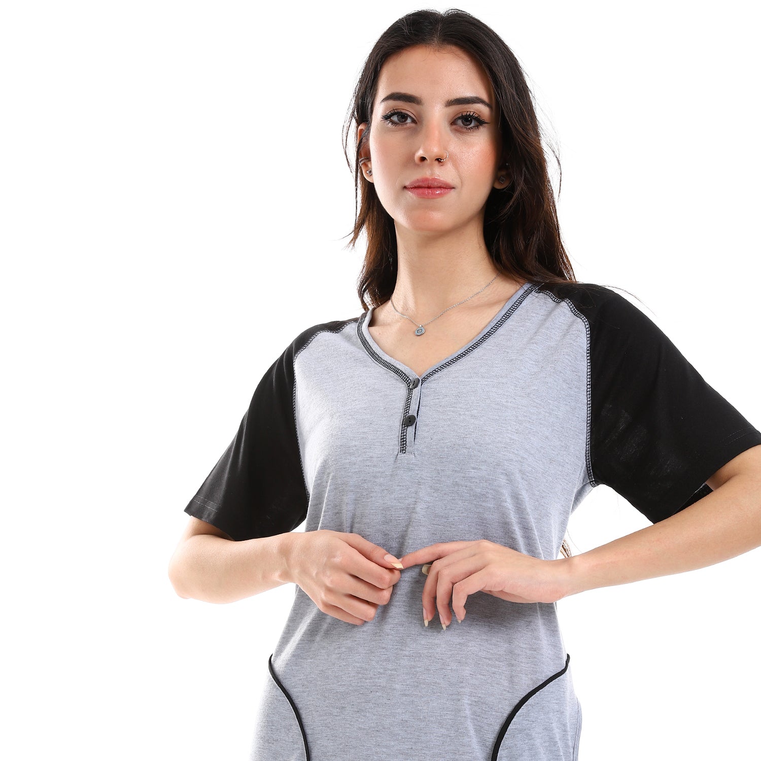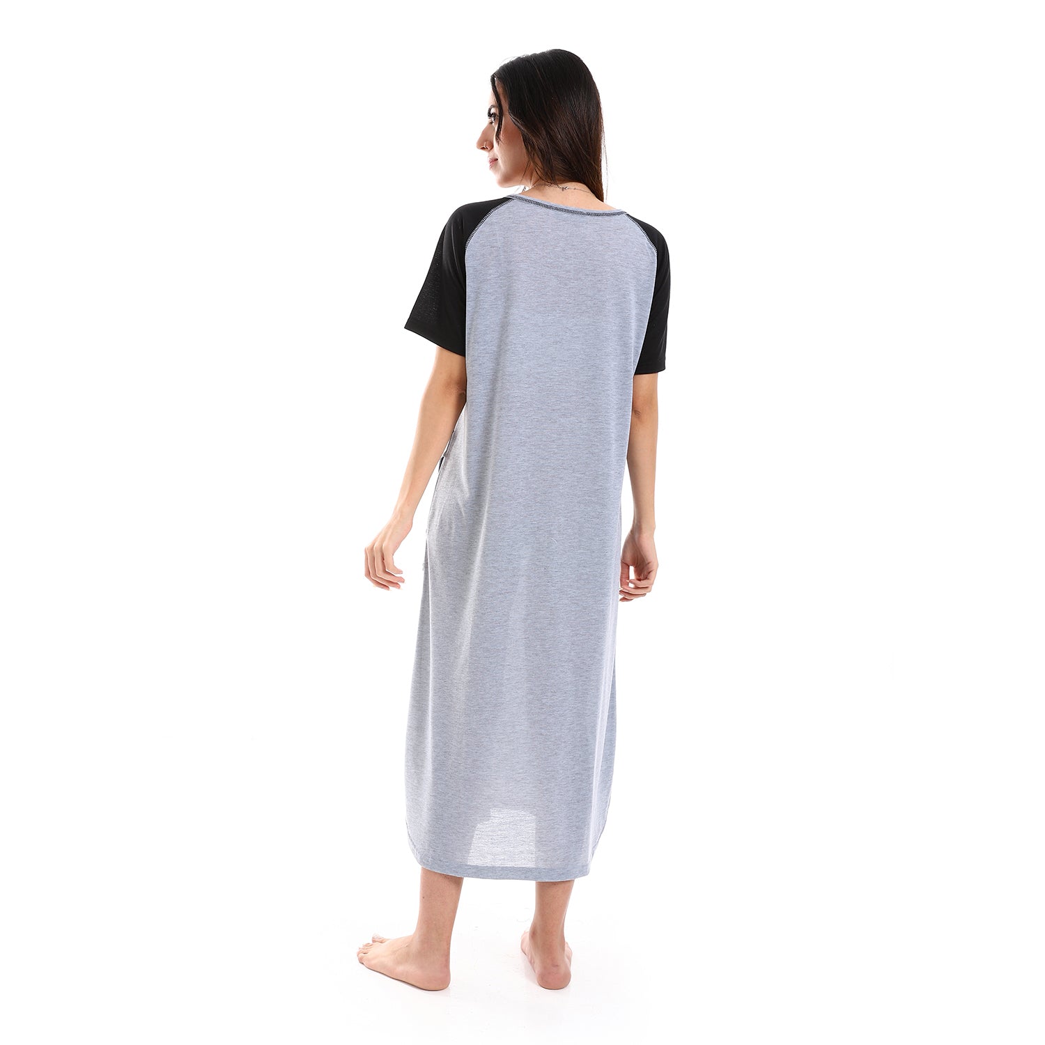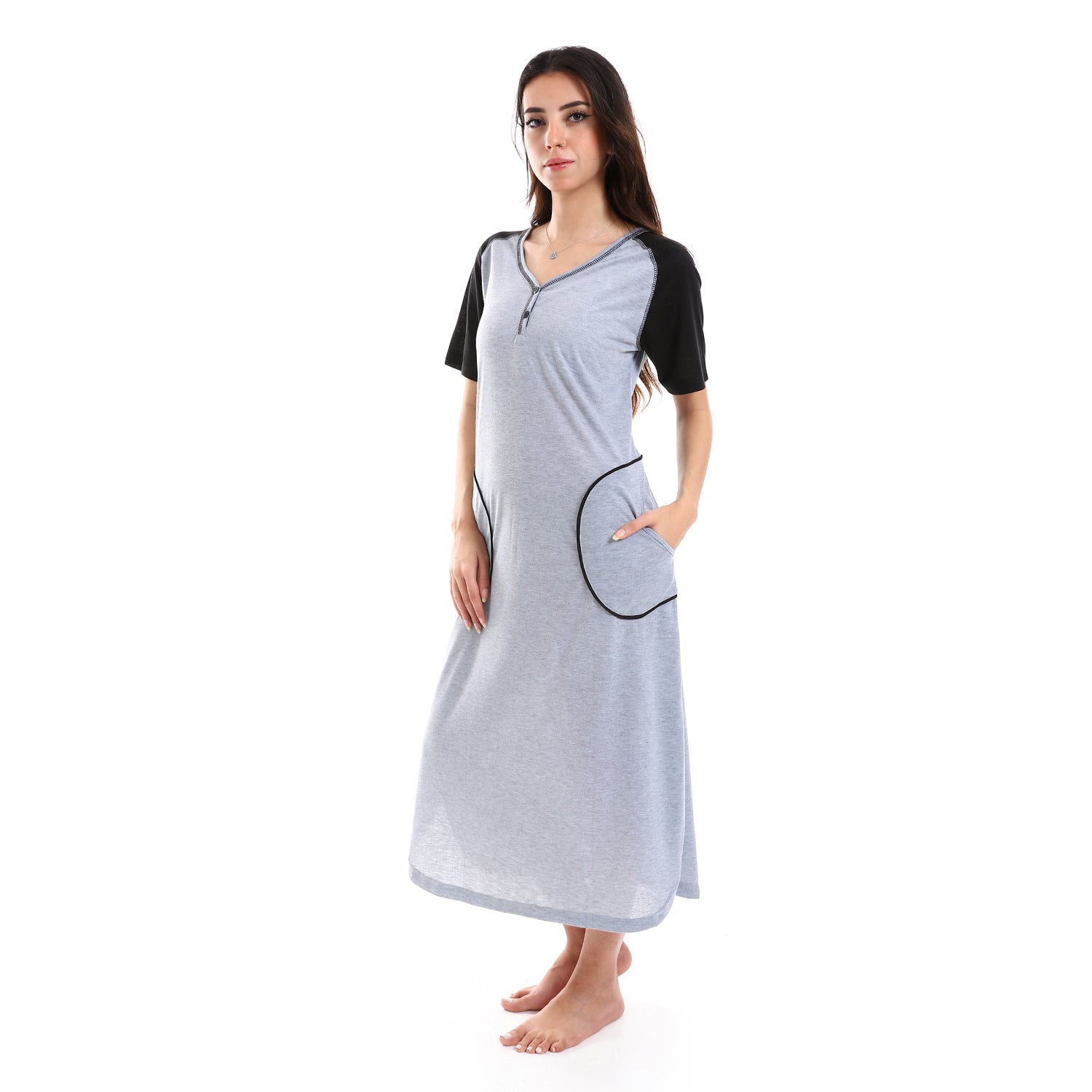 قميص نوم نسائي من كادي بأكمام قصيرة وجيوب أمامية