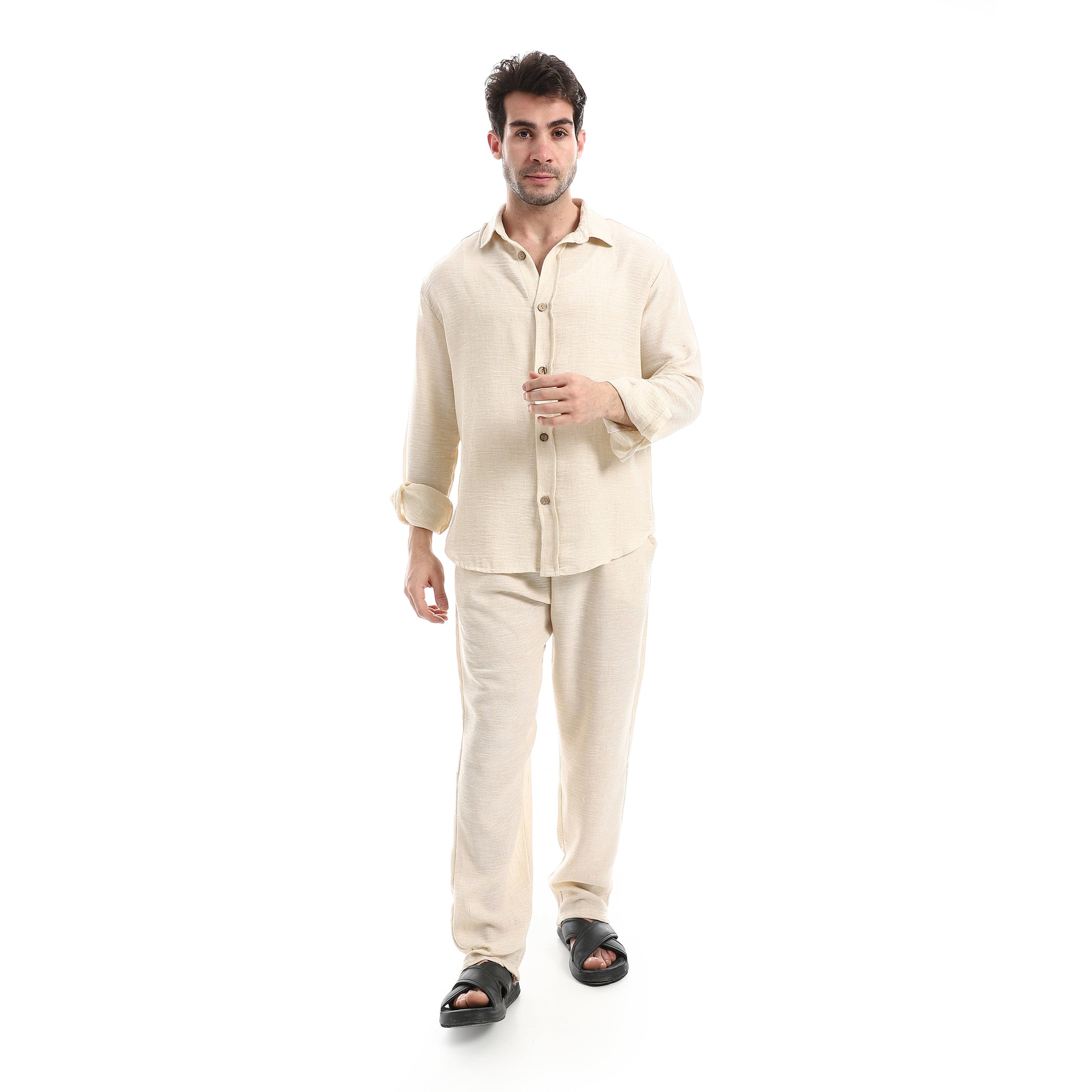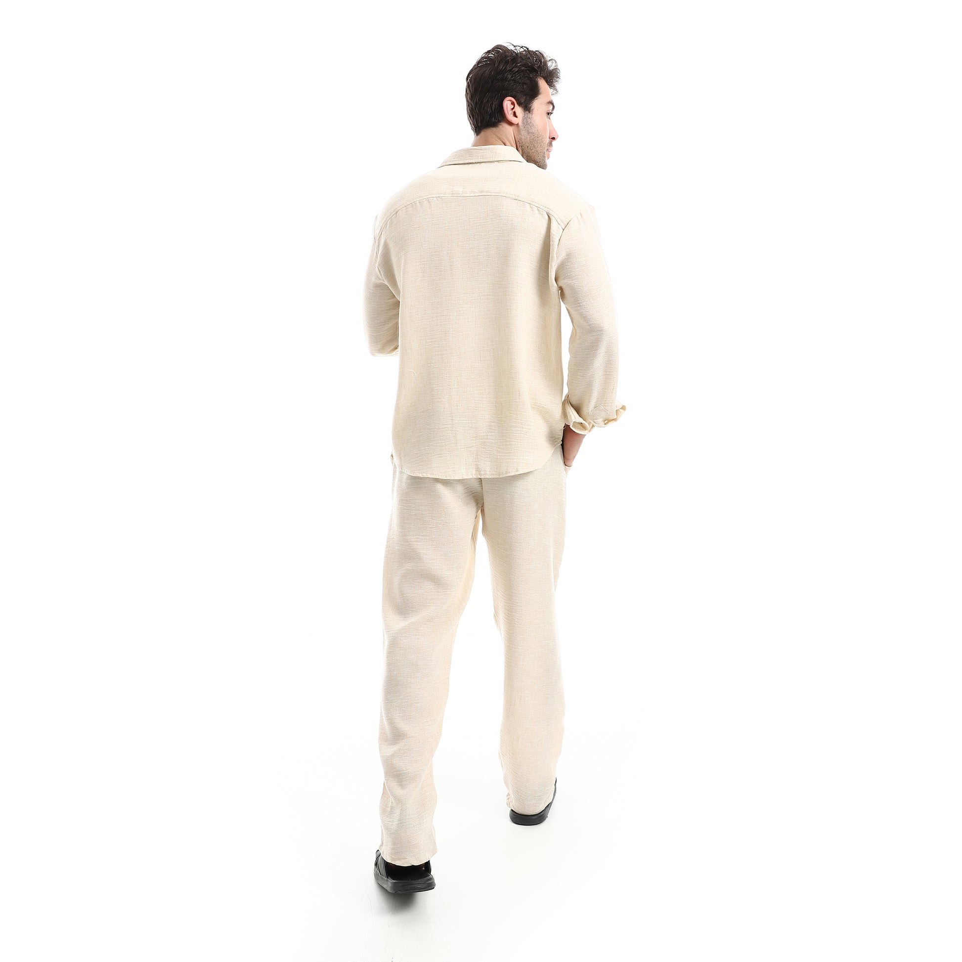 طقم بنطلون كتان خفيف الوزن بزر إغلاق