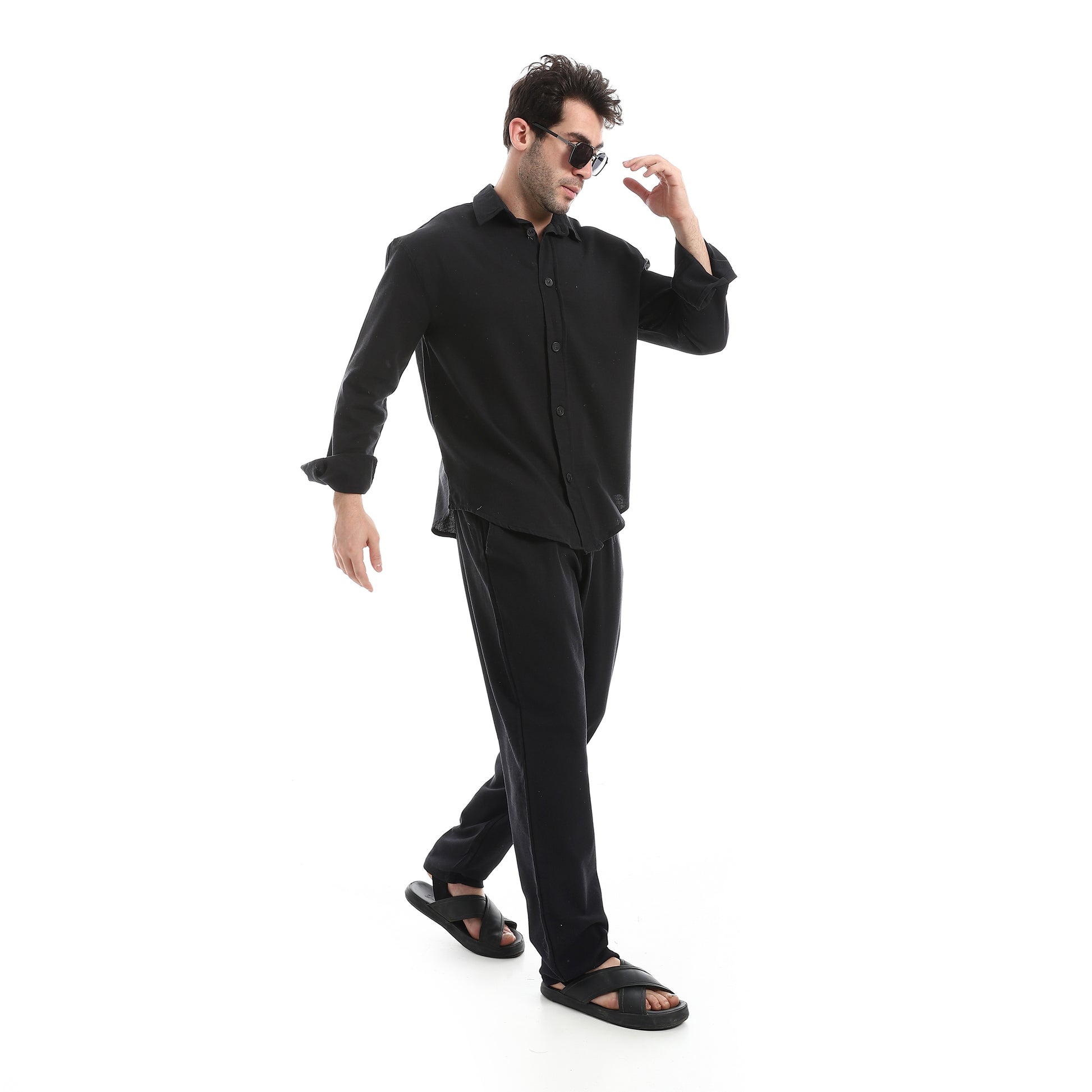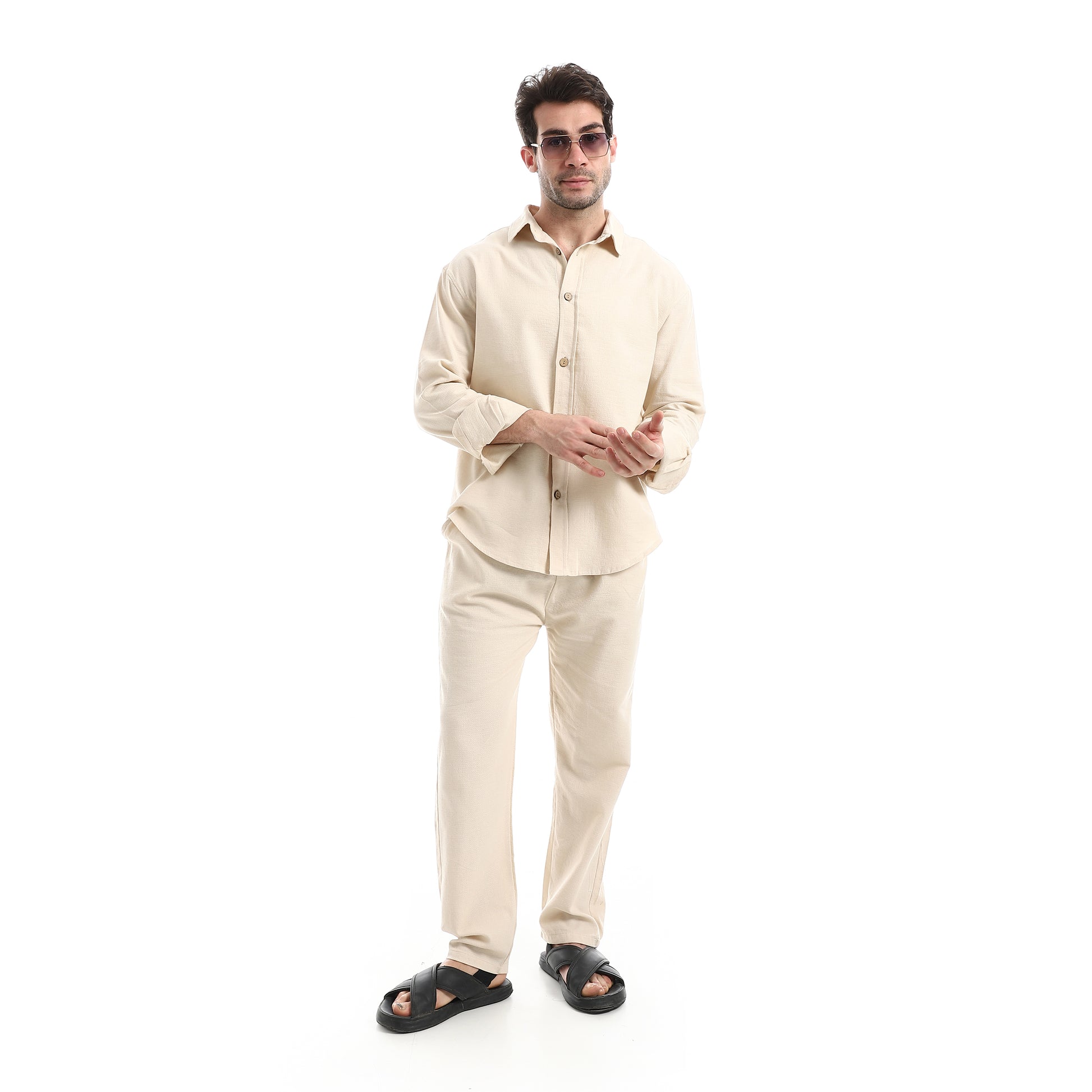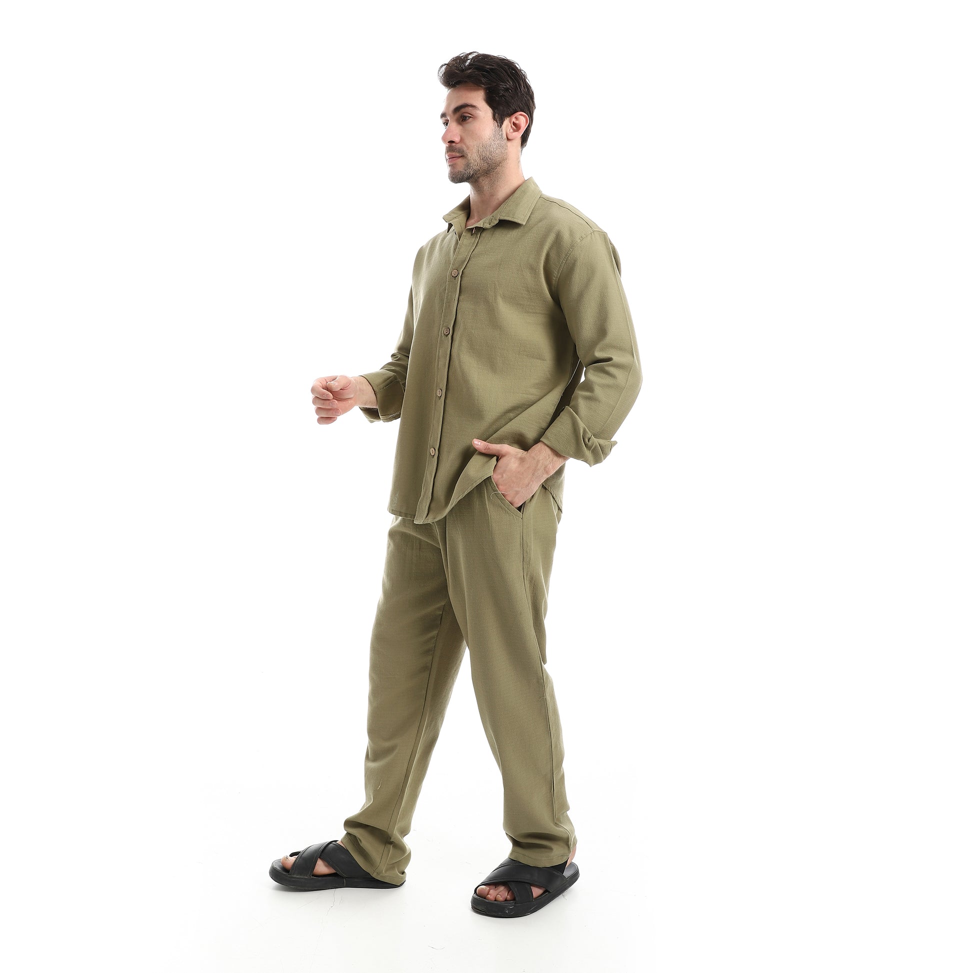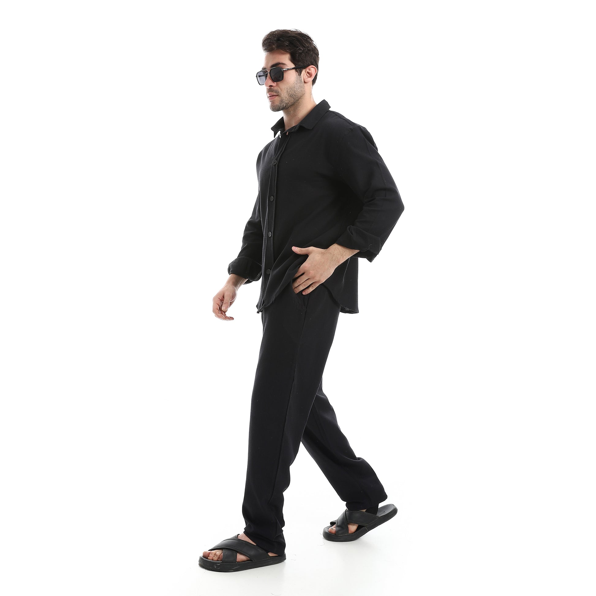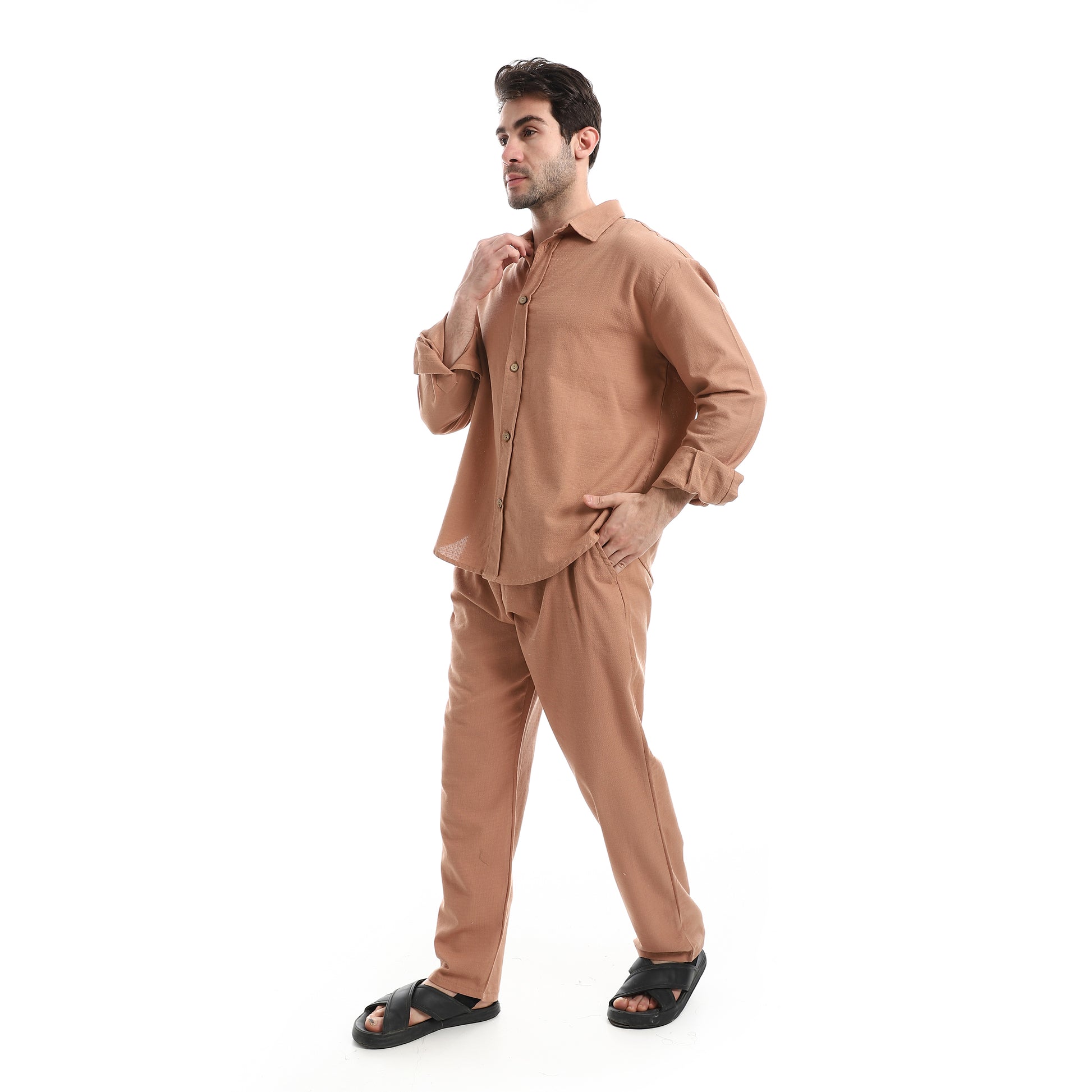 طقم بنطلون سادة بأكمام طويلة وكاجوال