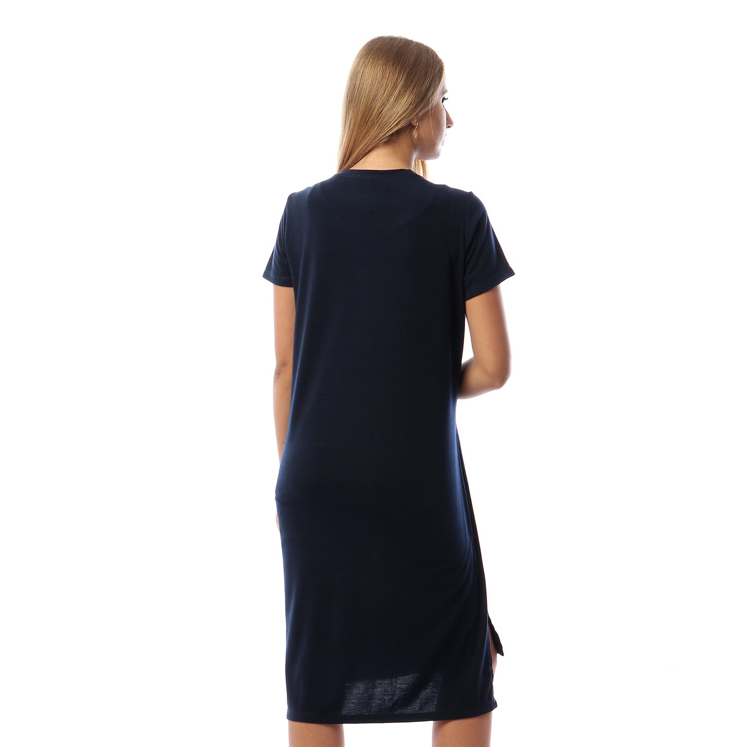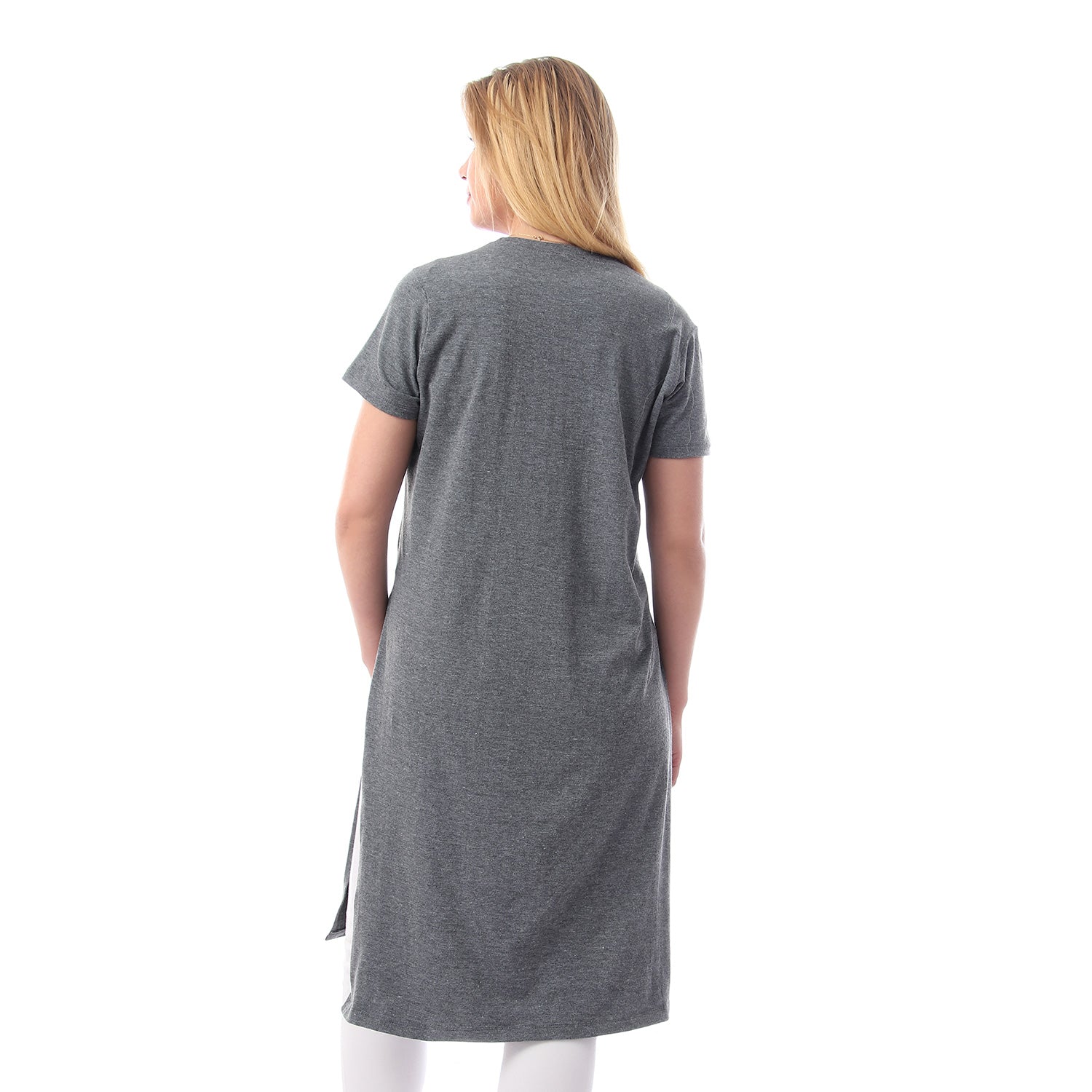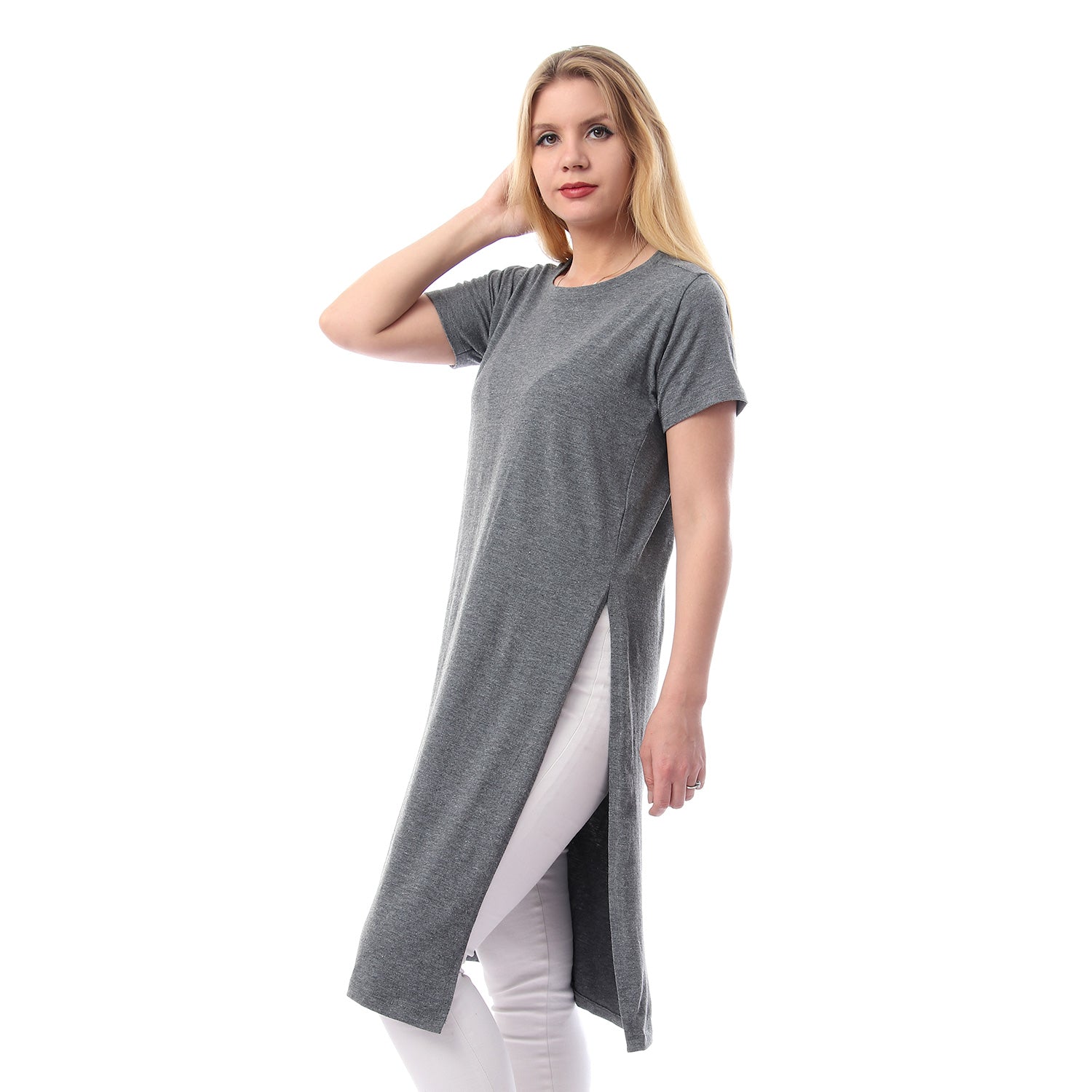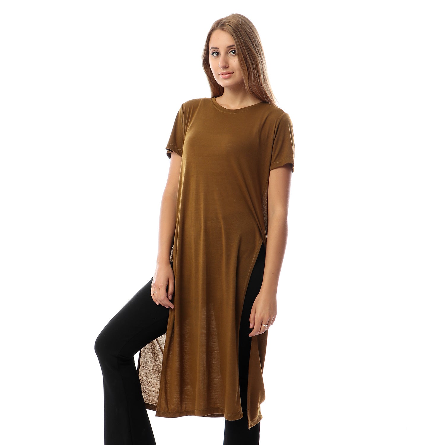 بلوزة أساسية بأكمام قصيرة وفتحات جانبية
