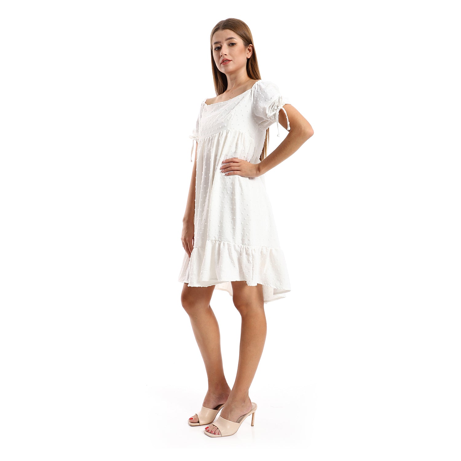 جميلة تونيك نسائي مخيط ذاتيًا بياقة مربعة وطبقات