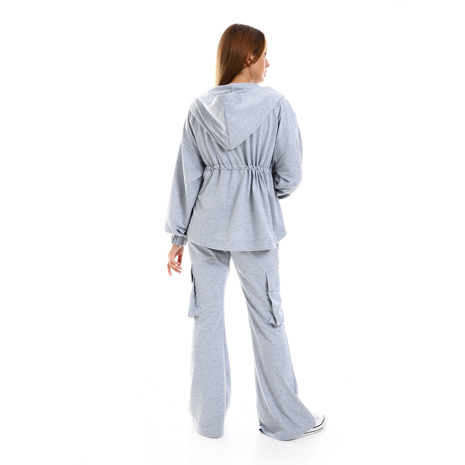 طقم كارديجان وبنطلون سادة بجيوب جانبية للنساء من جميلة