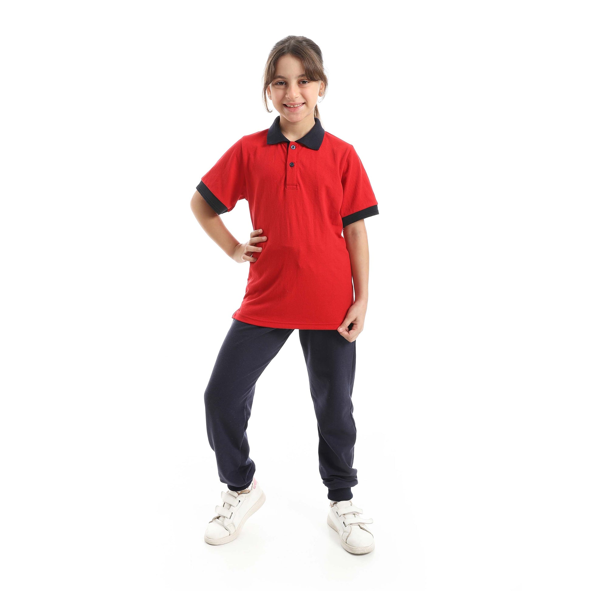 Red Circle Half Sleeve Polo Set + Pants Kids