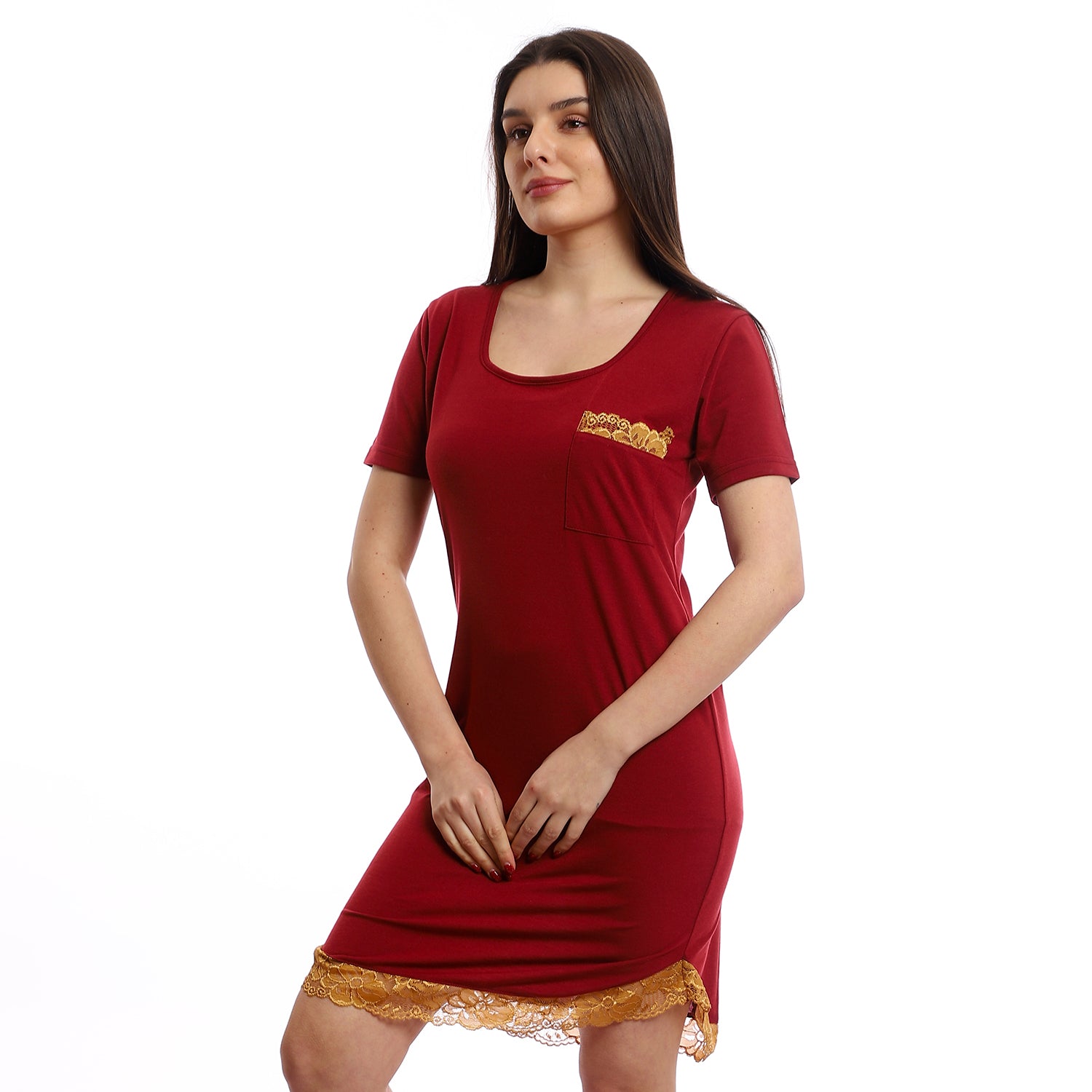 kady Deep Round Neck Comfy Sleepshirt With Lace Detailing women