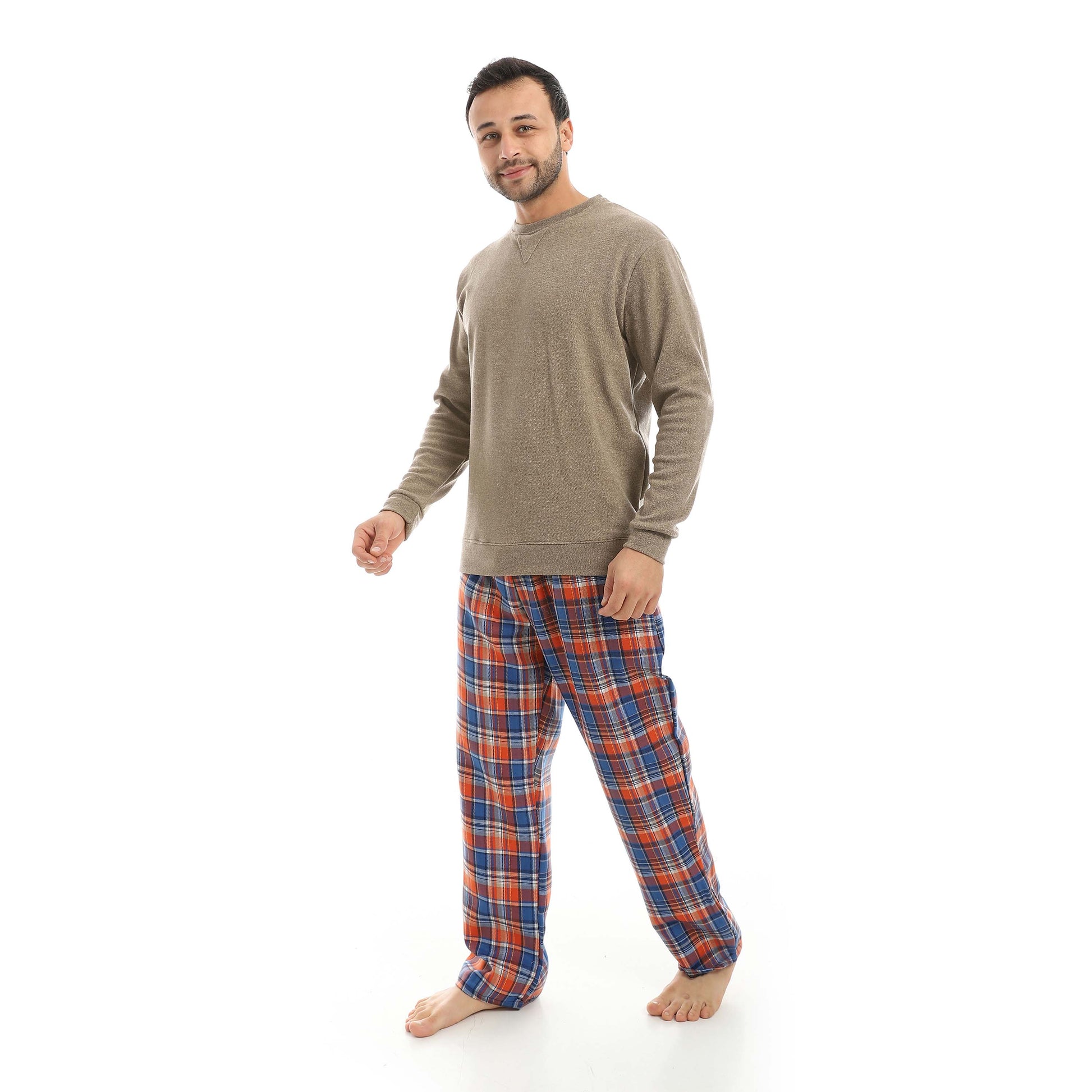 Red Circle Pajama Round Neck with Gingham Pant Men
