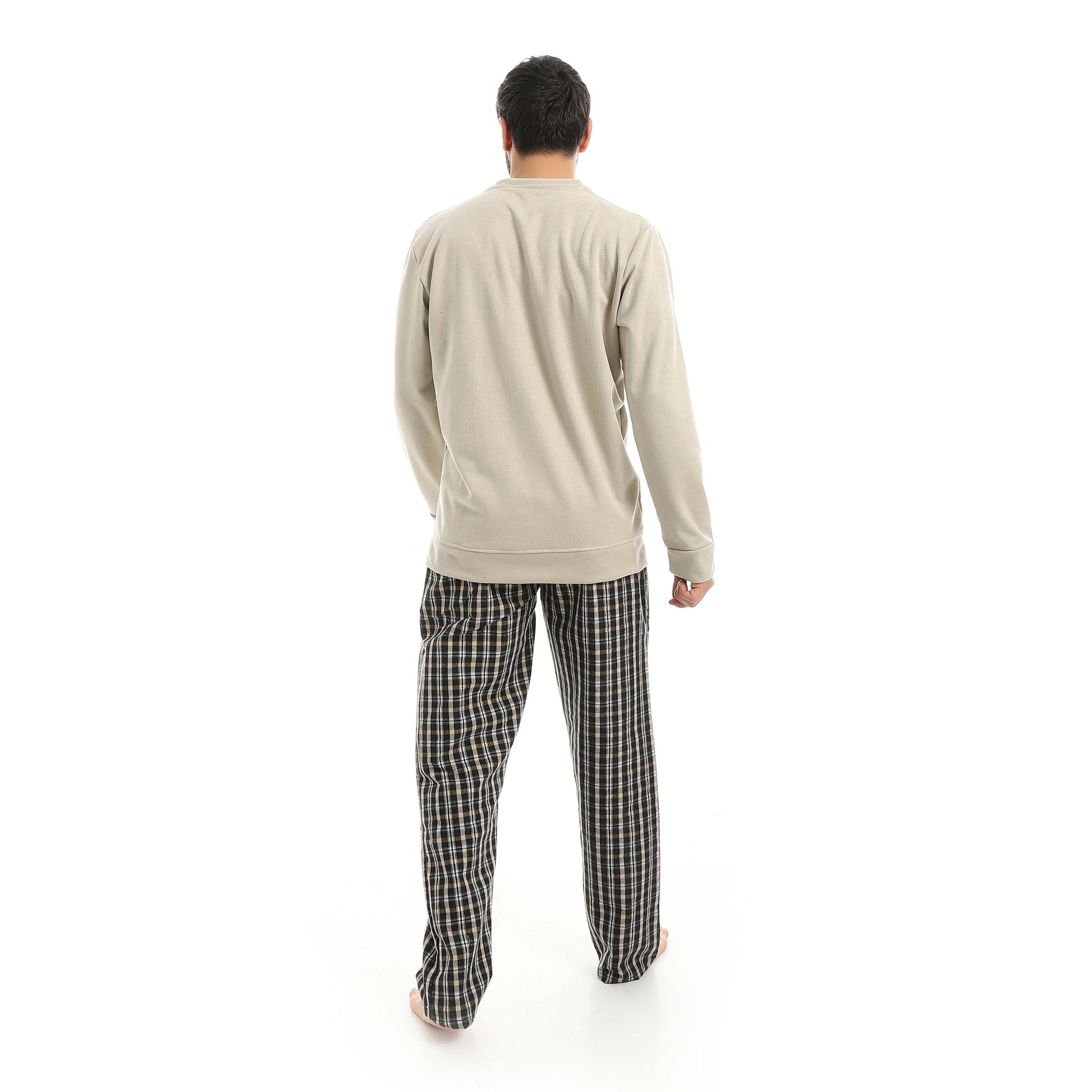 Red Circle Pajama Chamois Round Neck with Gingham Pant Men
