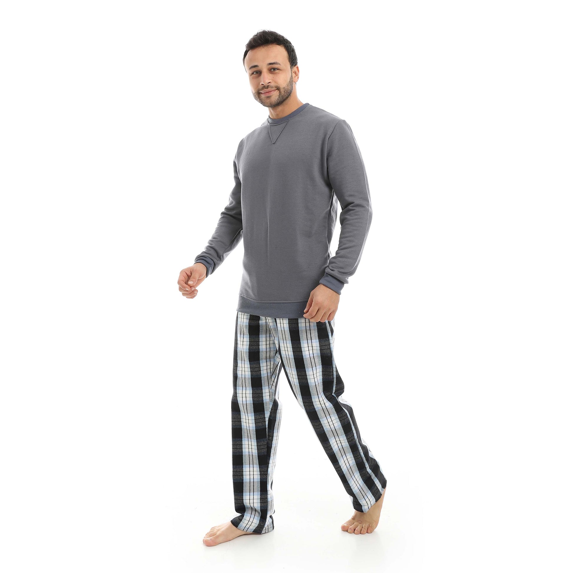 Red Circle Pajama Summer Milton Round Neck with Gingham Pant Men