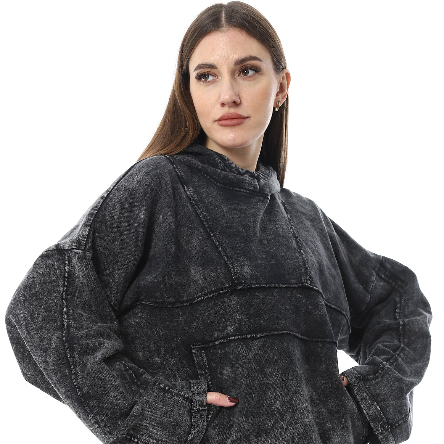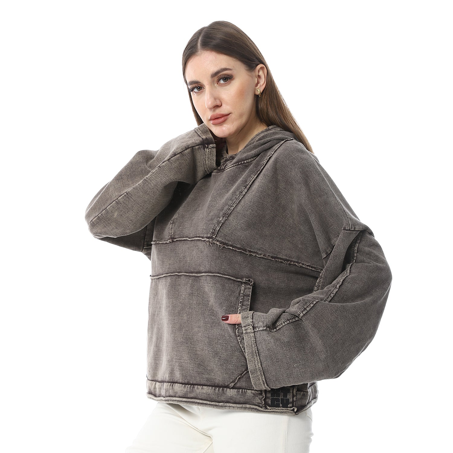 XTCY sweatshirt with a hood and a cut at the chest for women