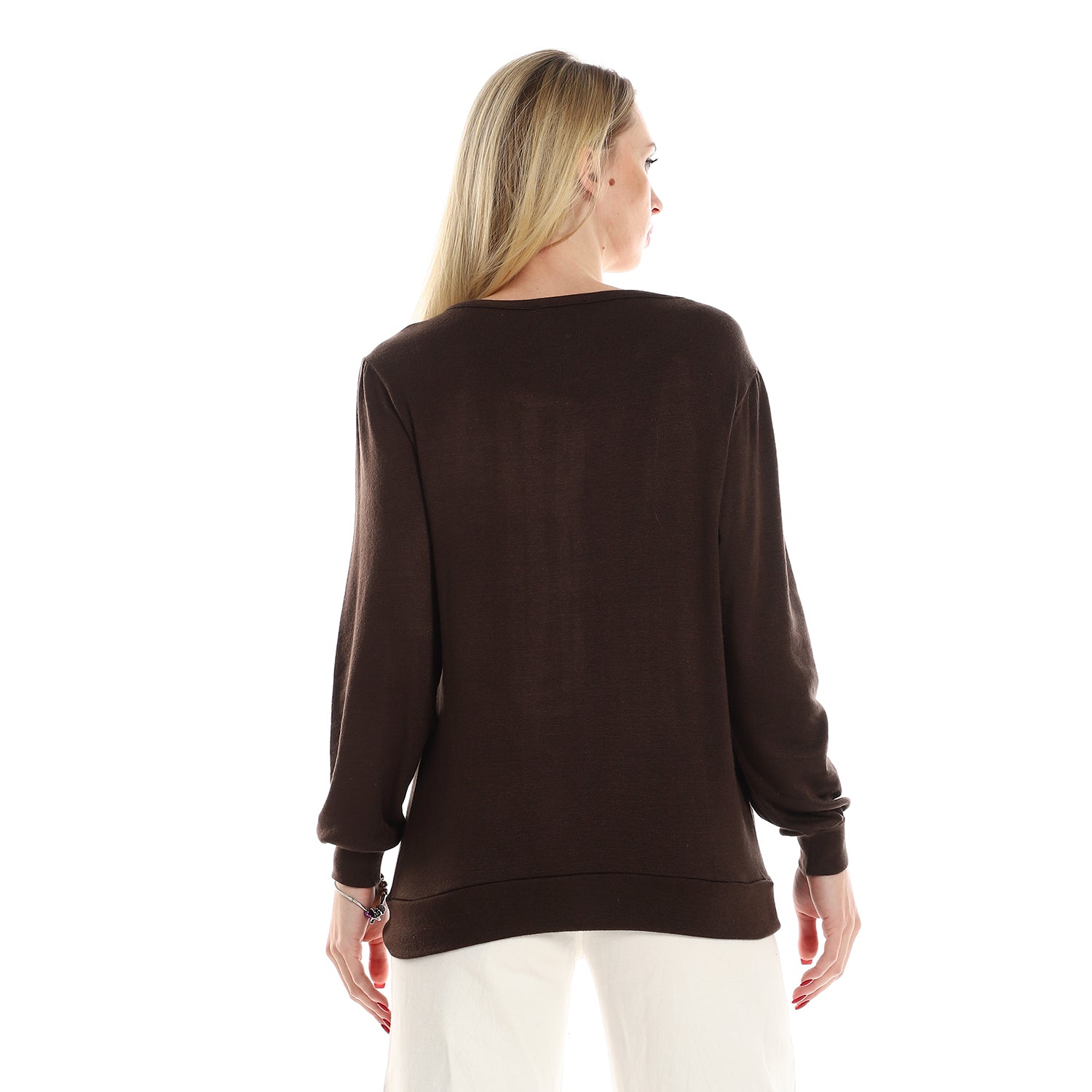 Jamila Women Knitted Round Neck Sweater With Decorative Hem