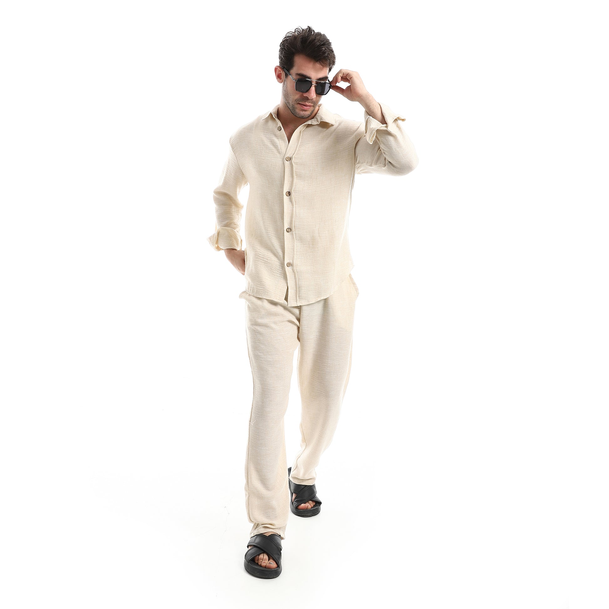 Slash Pockets Linen Pants